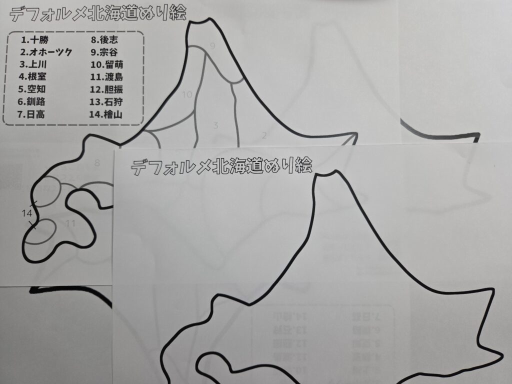 北海道の白地図ぬり絵、市町村白地図ぬり絵はあったけれど、14総合振興局で分けて塗れるぬり絵はない!