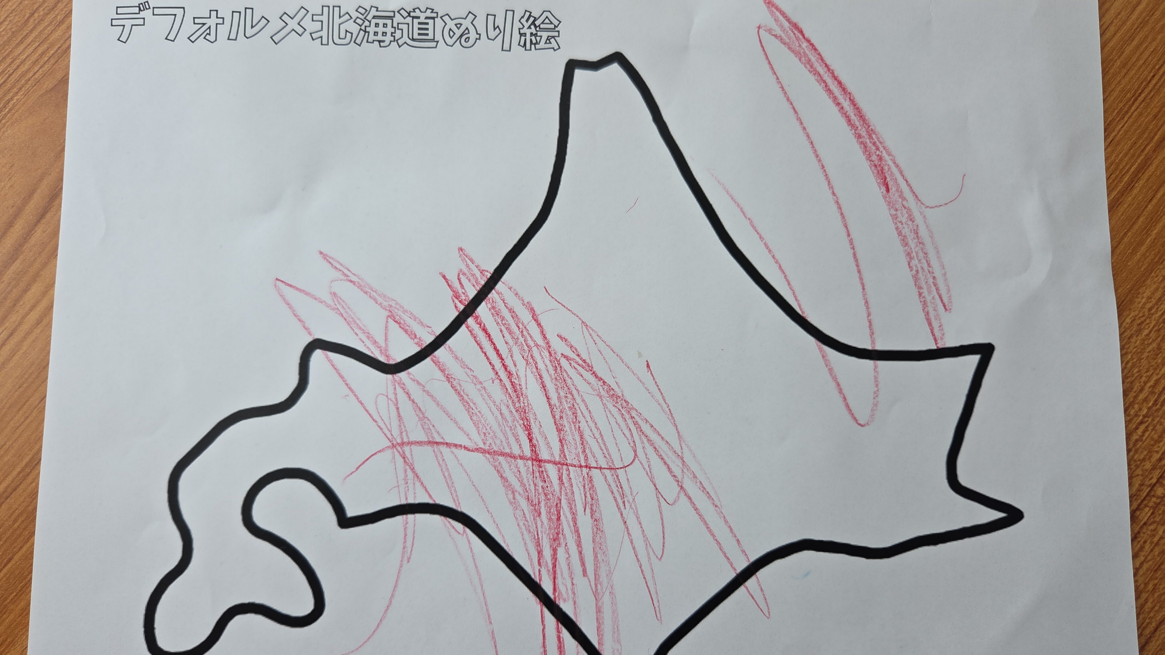 北海道の地形を参考に、自分好みにデフォルメした北海道のイラストを描いたものをぬり絵に仕立ててみました。