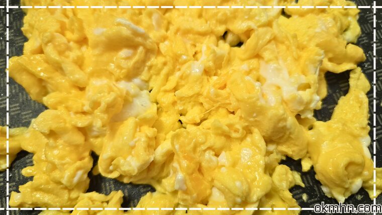 卵は細かいスクランブルエッグを作ると散らばって食べにくくなるので、ゴロッとした卵の塊を作る気持ちで。