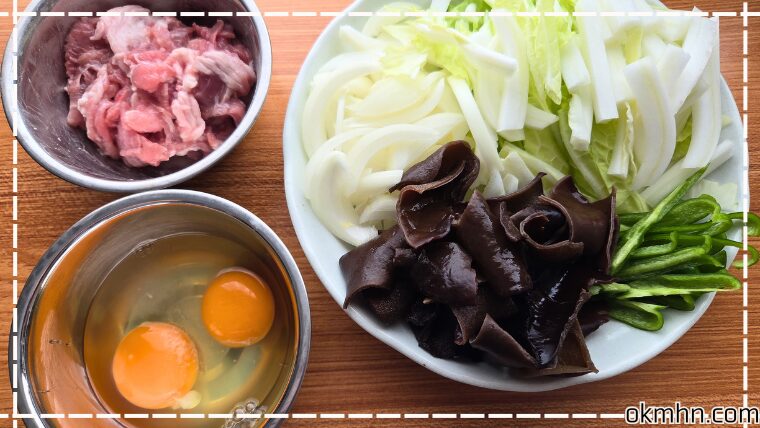 豚肉・卵・キクラゲが主な具材の炒め物で、中華チラシはこれをご飯の上に乗せたものがそもそもの始まりだったそうです。