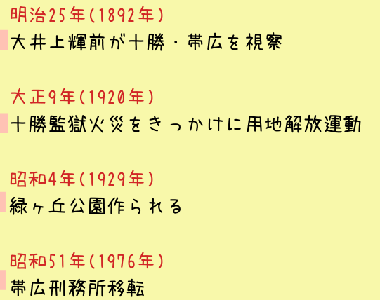 十勝監獄だった土地は、様子や若干場所がずれて、昭和初期には緑ヶ丘公園が作られました。